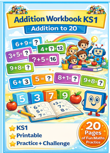 Addition Workbook KS1 & KS2 | 1st–3rd Grade Math Worksheets (20 Pages)
