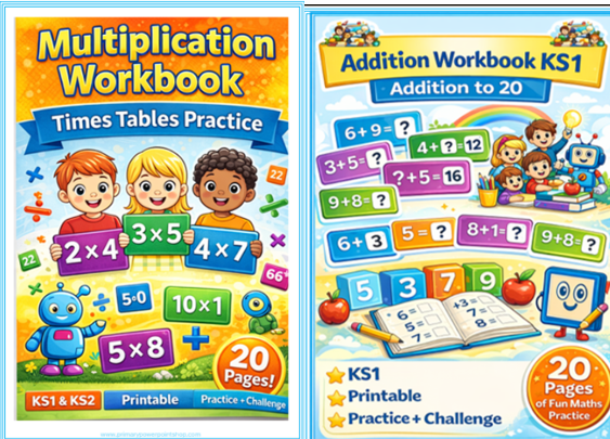Maths Workbook Bundle KS1 & KS2 | Addition + Multiplication Worksheets (40 Pages) | 1st–4th Grade Math