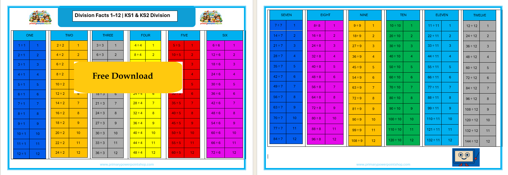 FREE Division Facts 1–12 | KS1 & KS2 Division Tables Printable Worksheet