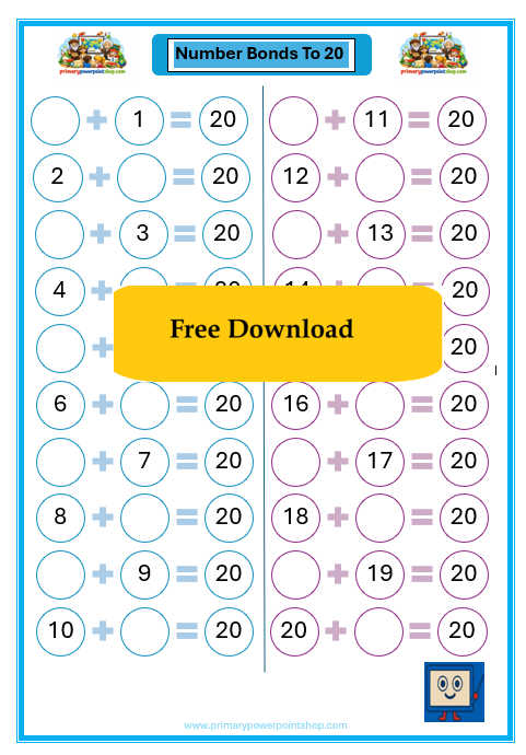 FREE Number Bonds to 20 Worksheet Printable | Missing Numbers KS, 3rd Grade Math