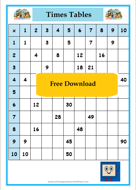 Multiplication Chart 1–10 Printable | Times Tables Grid 2nd & 3rd Grade Math