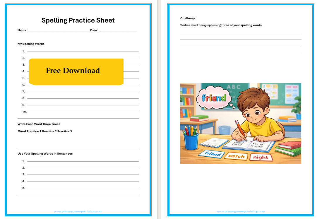 Spelling Practice Sheet | KS1 & KS2 Spelling Worksheet | Free Download