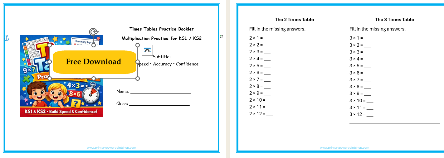 Times Tables Practice Worksheet 12×12 | Multiplication Worksheets KS1 & 3rd Grade Math