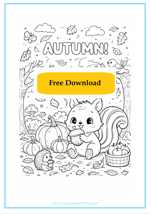 This free printable autumn colouring sheet allows children to explore seasonal themes such as falling leaves, nature, and harvest time while developing creativity and fine motor skills. Pupils can colour a range of autumn-themed images, making it a relaxing and enjoyable activity.