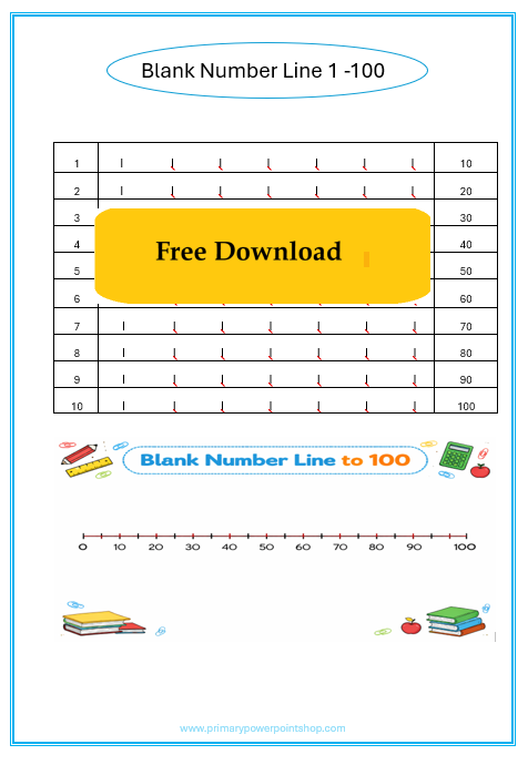 Download this FREE blank number line 1–100 printable, perfect for helping pupils practise counting, addition, subtraction and number patterns. Ideal for KS1 and KS2 classrooms — simply print and use with no preparation required.