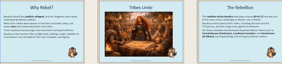 Explore one of the most dramatic events in Roman Britain with this powerful and structured KS2 History lesson on Boudica’s rebellion.