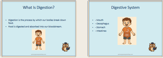 Engaging KS2 Science lesson (13 slides) on digestion and nutrition. Teach the digestive system, food groups, balanced diet and how the body absorbs nutrients through clear explanations, discussion tasks and structured activities.