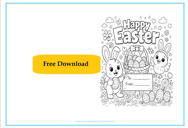 This free printable resource allows children to design and personalise their own Easter card. Pupils can colour, decorate, and add a special message, making it a meaningful and engaging activity.