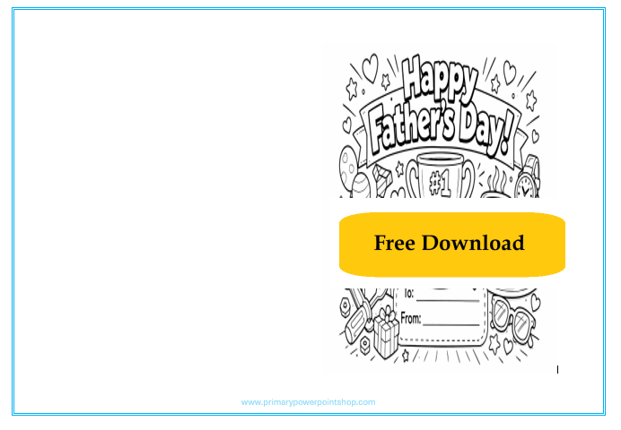 This free printable resource allows children to design and personalise their own Father’s Day card. Pupils can colour, decorate, and add a special message, making it a meaningful and engaging activity.