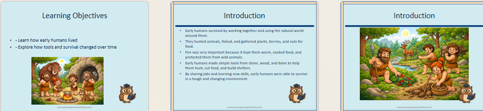 This KS2 Stone Age: How Did Early Humans Survive? Lesson Includes: