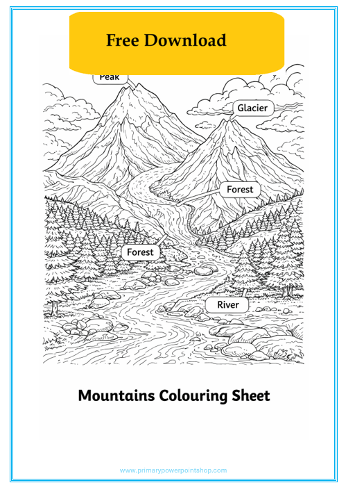 This mountains colouring sheet is a perfect no-prep resource for KS2 pupils, helping children explore key mountain features while developing creativity and focus.