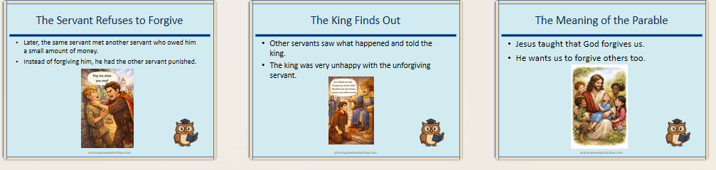 This child-friendly PowerPoint guides pupils through the story Jesus told about mercy and forgiveness, helping them understand why forgiving others is important in both Christian teaching and everyday life.