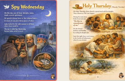 - Full retelling of the Easter story: